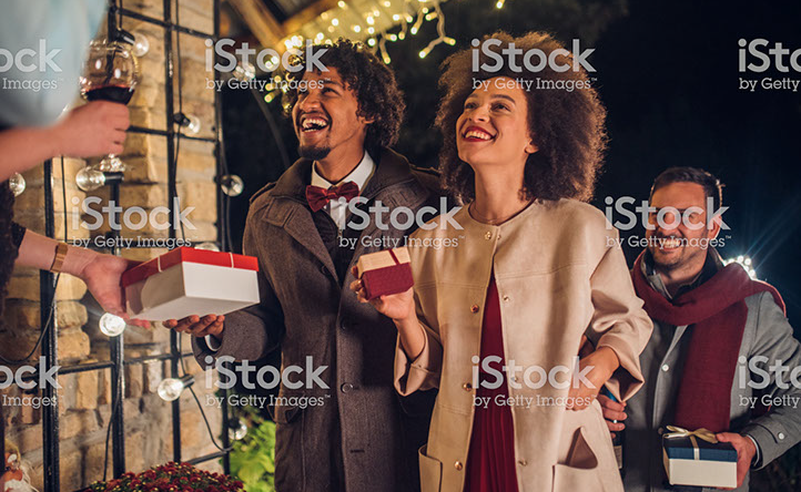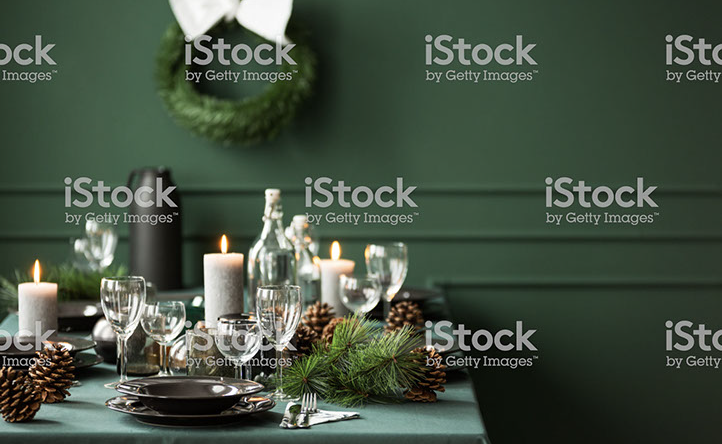 Shot of women's hand holding sparklers in from of Christmas decorated table and tree